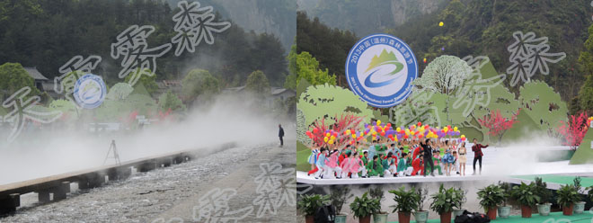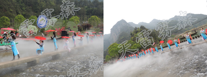 此次森林旅游節(jié)開(kāi)幕式舞美設(shè)計(jì)采用了杭州天雷噴泉設(shè)備有限公司提供的霧森設(shè)備系統(tǒng),為美麗的楠溪江蒙上了一層飄渺虛幻的面紗 。 水霧與舞臺(tái)表演實(shí)現(xiàn)了完美的結(jié)合,受到了在場(chǎng)觀(guān)眾的熱烈好評(píng)。