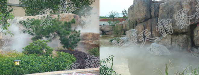 人造霧設備采用先進科技設備,將普通的水經過過濾系統的處理,確保整個系統在最佳條件下順利運轉,經過高壓機組加壓后,完成系統傳輸,經由霧噴噴頭,使水形成1-15微米的自然顆粒,霧化至整個空間,這些微小的人造霧噴顆粒能長時間漂浮、懸浮在空氣中。人造霧噴景觀系統可產生一種新奇獨特的景觀效果,且參與性非常高。