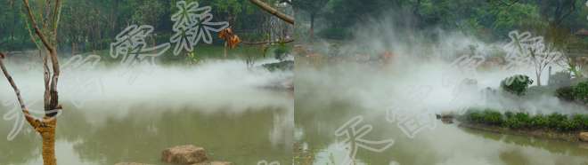在環保意識增強的今天,人造霧越來越多地走進景觀場景,達到降溫和美觀的效果。人造噴霧景觀有著極大的景觀設計魅力,從自然美景的烘托、自然韻味的營造,到建筑景觀的特殊創意性設計,人造噴霧景觀處處體現著人類文化與自然的融合,人們在其中嬉戲玩樂,幾多游哉,幾多悠哉。滿足了人類回歸自然的愿望和對美的追求。