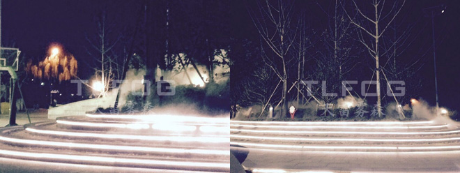 人造霧設備采用先進科技設備,將普通的水經過過濾系統的處理,確保整個系統在最佳條件下順利運轉,經過高壓機組加壓后,完成系統傳輸,經由霧噴噴頭,使水形成1-15微米的自然顆粒,霧化至整個空間,這些微小的人造霧噴顆粒能長時間漂浮、懸浮在空氣中。人造霧噴景觀系統可產生一種新奇獨特的景觀效果,且參與性非常高。