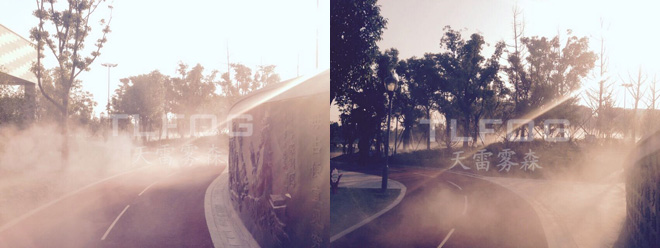 在環保意識增強的今天,人造霧越來越多地走進景觀場景,達到降溫和美觀的效果。人造噴霧景觀有著極大的景觀設計魅力,從自然美景的烘托、自然韻味的營造,到建筑景觀的特殊創意性設計,人造噴霧景觀處處體現著人類文化與自然的融合,人們在其中嬉戲玩樂,幾多游哉,幾多悠哉。滿足了人類回歸自然的愿望和對美的追求。