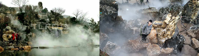 在環保意識增強的今天,人造霧越來越多地走進景觀場景,達到降溫和美觀的效果。人造噴霧景觀有著極大的景觀設計魅力,從自然美景的烘托、自然韻味的營造,到建筑景觀的特殊創意性設計,人造噴霧景觀處處體現著人類文化與自然的融合,人們在其中嬉戲玩樂,幾多游哉,幾多悠哉。滿足了人類回歸自然的愿望和對美的追求。