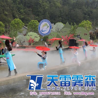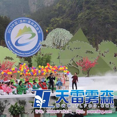 2013中國(溫州)森林旅游節,4月1日上午在永嘉縣金珠瀑文化休閑中心(永嘉書院)舉行開幕式。 此次森林旅游節開幕式舞美設計采用了杭州天雷噴泉設備有限公司提供的霧森設備系統,為美麗的楠溪江蒙上了一層飄渺虛幻的面紗。水霧與舞臺表演實現了完美的結合,受到了在場觀眾的熱烈好評。