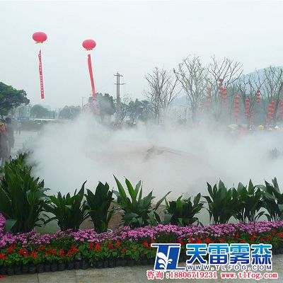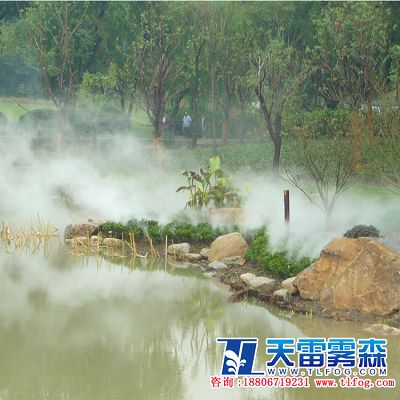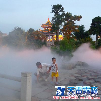 在公園景點中,許多標志性景觀是一個重要的元素,但它同時也需要其它景觀樸素去襯托、去融合。無論是剛硬的雕塑,還是其它更獨特的景觀,與霧融合在一起時,便產生了一種具有極致反差的視覺效果與強烈的美感。