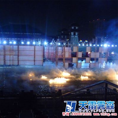 傳統的舞臺霧效主要有兩個方式干冰造霧、煙機造霧。主要特點是一次性造霧,霧效難以持續,霧量和時間等都不易控制,而且不環保、不健康,影響演員的表演。 目前有一種新型的噴霧系統不但克服了傳統噴霧機的缺點,可以多次使用,霧量、噴霧時間和持續時間都可以隨心所欲地控制,而且霧效美觀又有益身心健康,它是利用市政供水,經過水處理程序進行粗濾、精濾,將水質中的雜質及鈣鎂離子分離,由反沖裝置將其排出,高壓系統對被過濾的水源進行加壓,使其變成汽液兩態的混合物,通過寶石噴頭噴出,溶入空氣中,形成自然霧氣。