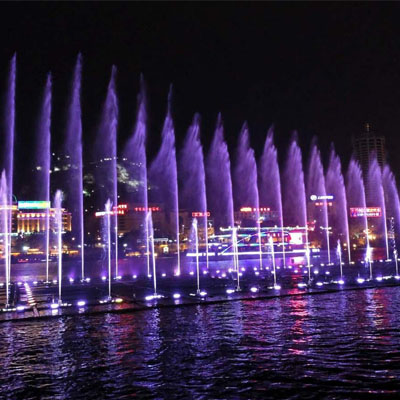 跑泉是由多個一線排列的噴頭,按時序控制噴水,構成各種形態噴水瞬間變化的噴泉。可形成跑動形態,還可構成各種跳動、波動等形態,又可以構成固定造型的噴水形態,氣勢壯大、雄偉,變化多端,扣人心弦,給整個噴泉起到了畫龍點睛的作用,使人們心靈中產生一種虛無飄渺的感覺,也是體現噴泉高品位特色的一個主要景觀。